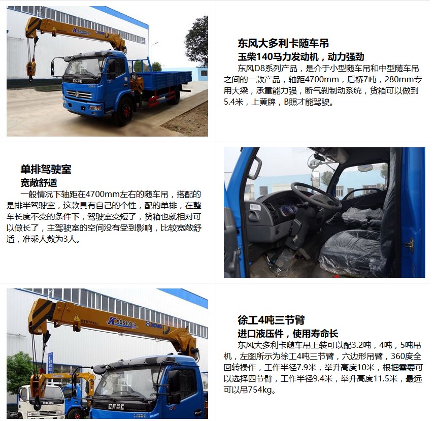 随车起重运输车,是一种通过液压举升及伸缩系统来实现货物的升降、回转、吊运的设备,通常装配于载货汽车上。一般由载货汽车底盘、货厢、取力器、吊机组成。载货汽车底盘可选东风、解放、欧曼、斯太尔等各吨位。 |