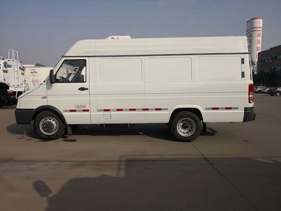 基本配置 :南京依维柯大空间面包式冷藏车,依维柯索菲姆国五130马力柴油发动机,排量为2798,功率为95KW,5档手动变速箱,轴距3310mm,总质量:4280kg,额定载质量:1135kg,整备质量:2950kg。